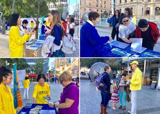 七月十五日,部份法轮功学员在布里斯本广场举行了纪念“七二零”和平反迫害十八周年的活动,把法轮大法的美好及迫害真相告知过往民众。