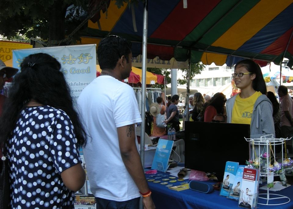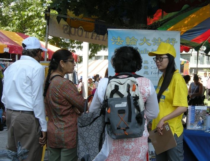 【明慧网二零一七年七月十八日】二零一七年七月十五日至十六日,加拿大多伦多法轮功学员青年俱乐部(Practitioner Youth Club)应邀参加了在多伦多市中心举办的第45届印度文化节(Festival of India),受到民众的喜爱和欢迎。初步了解了法轮功祛病健身的神奇功效和法轮功在中国受到中共迫害的真相后,很多人都想了解更多详情,有的还想修炼法轮功。人们纷纷谴责中共暴行并签名支持法轮功学员反迫害。