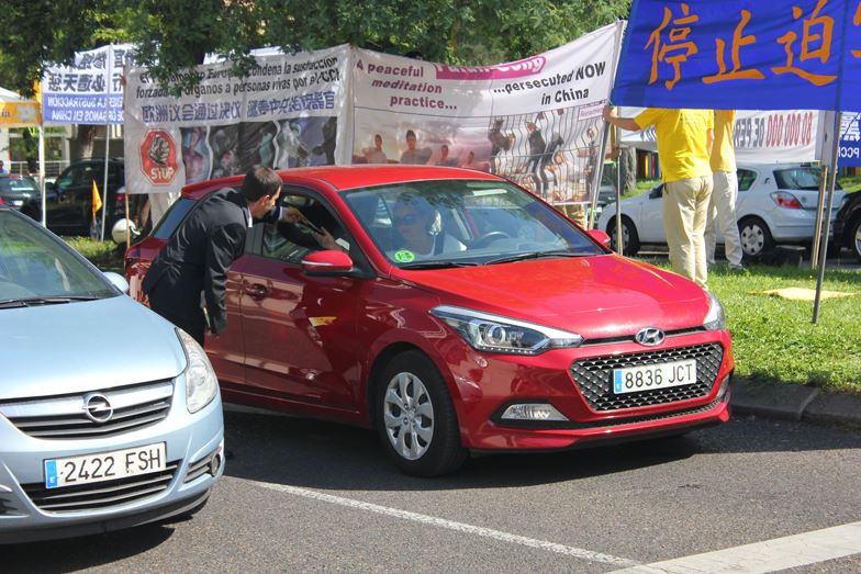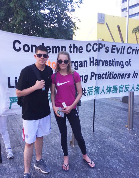 有三位年轻华人留学生,两名来自中国大陆,一名来自亚洲国家,他们在集会现场停留很久,先是拍摄法轮功学员的活动现场,然后停留在活动现场听法轮功学员张女士介绍法轮功真相。法轮功学员张女士说,这几名留学生反复询问,法轮功是什么,天安门自焚的真相是什么,中共为什么迫害法轮功,活摘器官是怎么回事,张女士一一为他们解释和澄清,得知真相后,他们表示很震惊,法轮功学员的讲真相活动让他们很震撼,他们都拿了法轮功的真相资料,其中一位表示要带回去给她的父亲看。