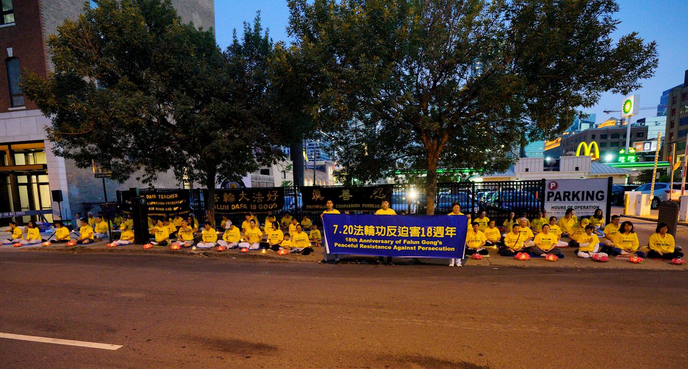 【明慧网二零一七年七月十八日】(明慧记者采菊纽约综合报道)二零一七年七月十六日晚,近千名法轮功学员在纽约中领馆前举办反迫害十八周年集会和烛光夜悼。集会上多名学员以亲身经历揭露了中共以酷刑和精神摧残等手段迫害法轮功学员的罪行。夜幕中,点点烛光闪亮,悼念被中共迫害致死的法轮功学员,同时呼唤良知,共同制止迫害,法办迫害元凶江泽民。不少民众驻足观看和了解。