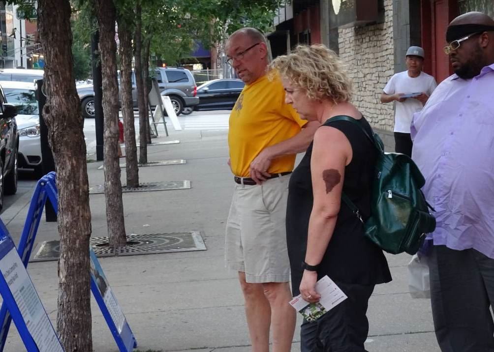 这时,只见中年男子深舒一口气:“我总算找对人了,一见面就觉得你人很正,你竟然敢在当街这么大声地谈论法轮功,这让我很佩服!”接下來,他又问了很多对法轮功迷惑不解的问题,店主以修炼法轮功的切身体验向他讲述法轮大法的美好,讲江泽民与共产党狼狈为奸迫害法轮功所犯下的滔天罪行,以及江氏集团面临恶报的现状,这位男士一直聚精会神的听着。
