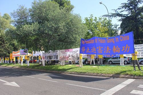 台湾法轮大法学会理事长张锦华表示,法轮功修炼是以真善忍为宗旨的佛家功法,但仅因为修炼人数众多广受欢迎,就遭到江泽民的妒嫉违法残酷迫害。她要特别感谢各位,在这炎炎夏日到场支持反对中共迫害法轮功。