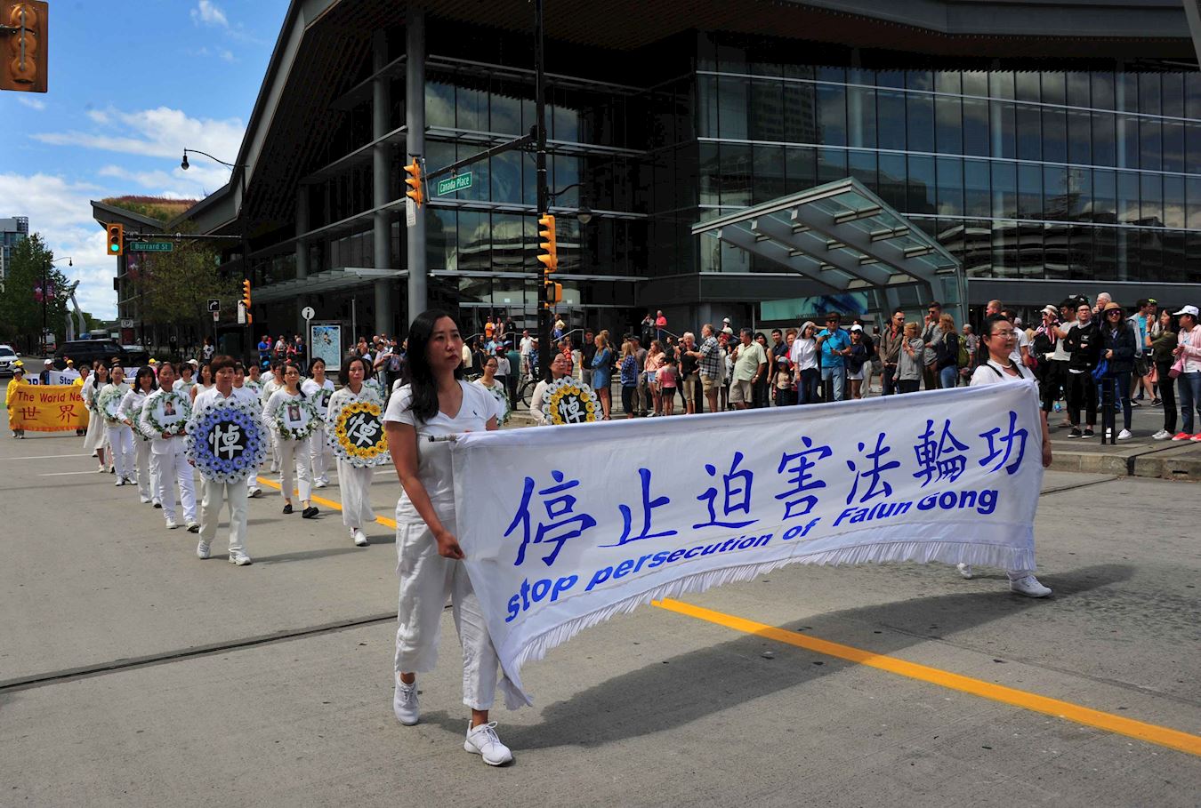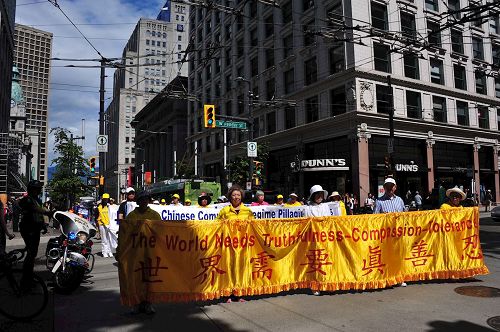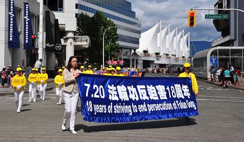 ![]() 图5~11:温哥华法轮功学员在繁华的市中心举行反迫害十八周年游行。 |
