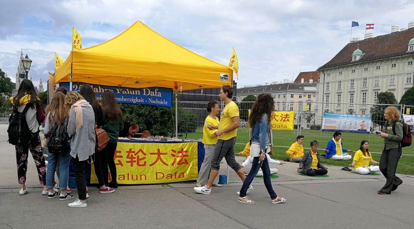 <英文版: http://en.minghui.org/html/articles/2017/7/20/164723.html>奥地利学员揭露中共迫害 各界支持反迫害(图)