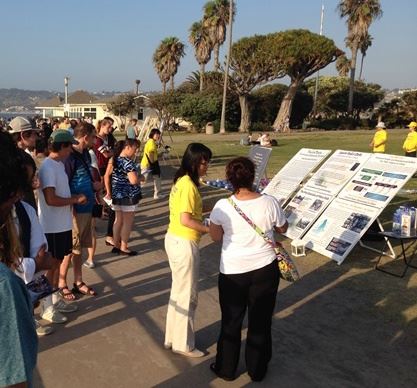 【明慧网二零一七年七月十九日】二零一七年的七月二十日是法轮功学员反迫害十八周年。七月十五日,圣地亚哥的法轮功学员在著名旅游景点拉荷亚海滩(La Jolla Cove)举行烛光夜悼等系列活动,呼吁国际社会关注中共对法轮功的迫害。