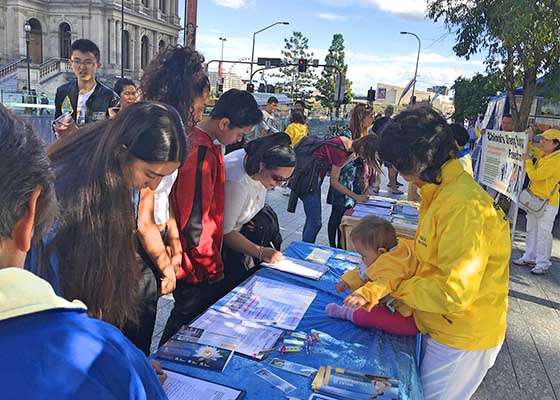 澳洲昆士兰部份法轮功学员在布里斯本市中心广场举行讲真相,征签活动,呼吁人们关注这场在中国发生的对法轮功的持续迫害。