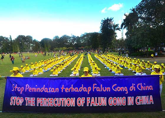 七月十六日,星期日,巴里岛法轮功学员在首府-登巴萨举办集会,揭露中共对大陆法轮功学员持续十八年的迫害。