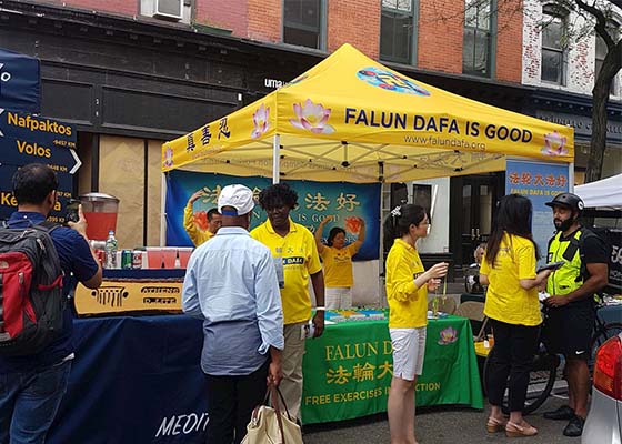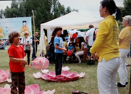 法轮功学员也参加了这次社区活动,他们展示五套缓慢圆的功法,宁静祥和,同时分享修炼法轮功带来的身心健康和按“真善忍”做好人的感受……