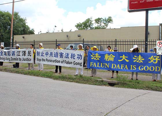 七月十九日下午,休士顿学员在中领馆前举行“反迫害十八周年”集会, 要求中共停止迫害法轮功,终止这场惨绝人寰的迫害。