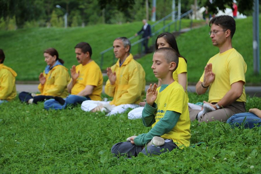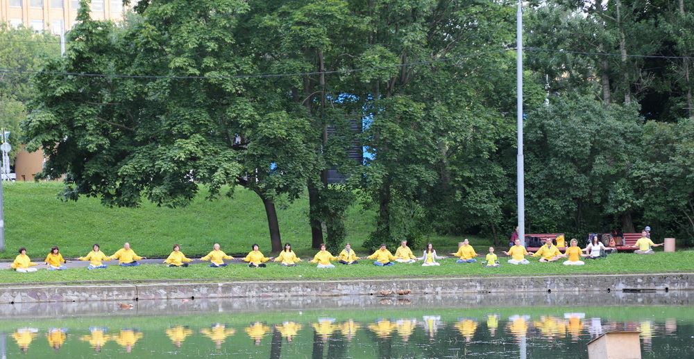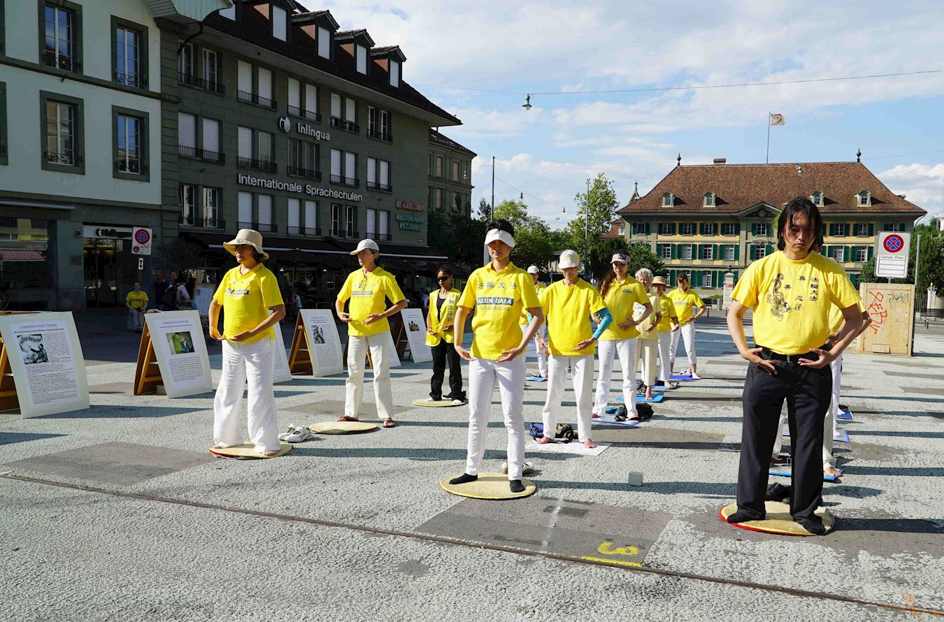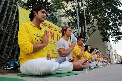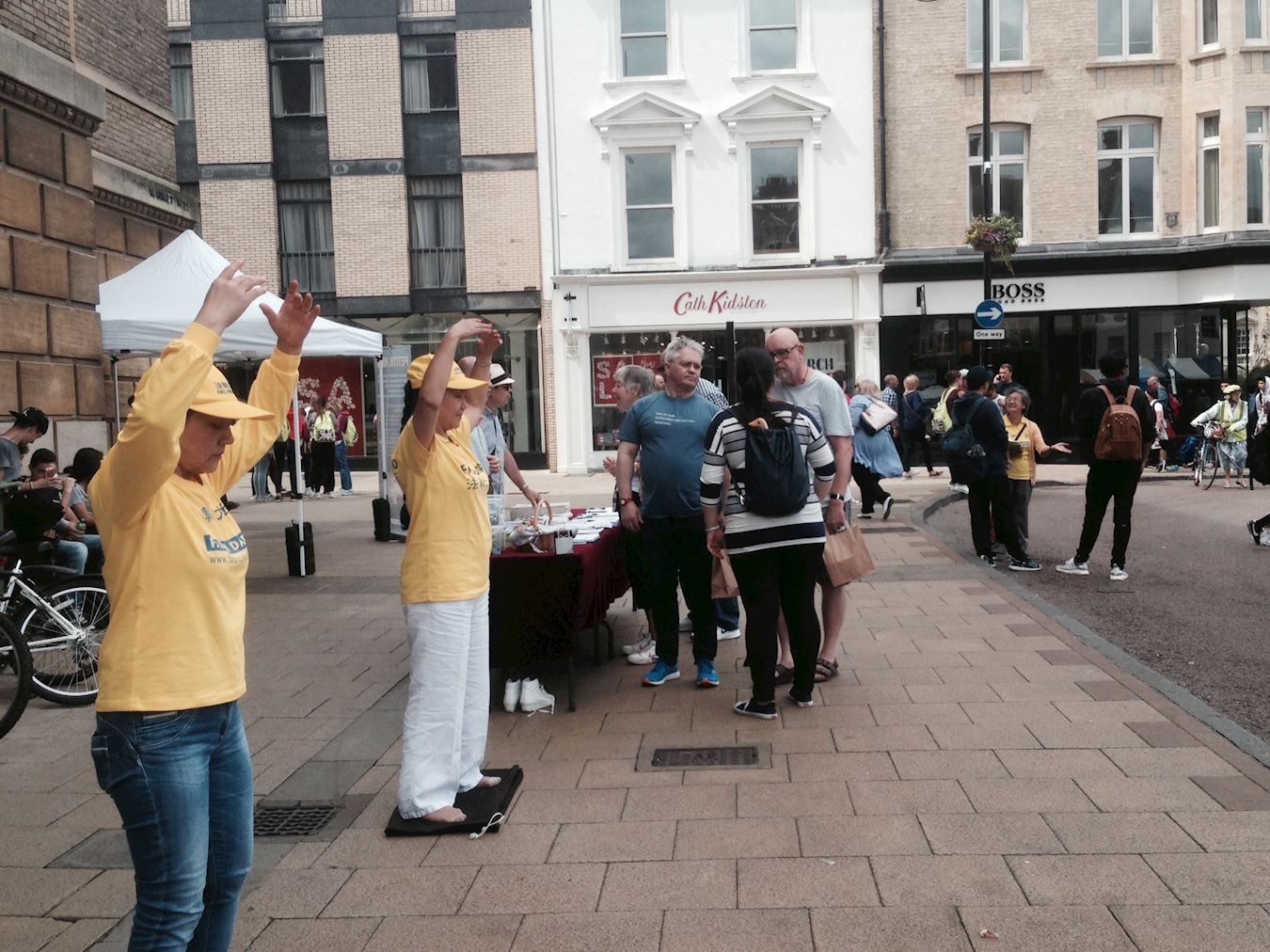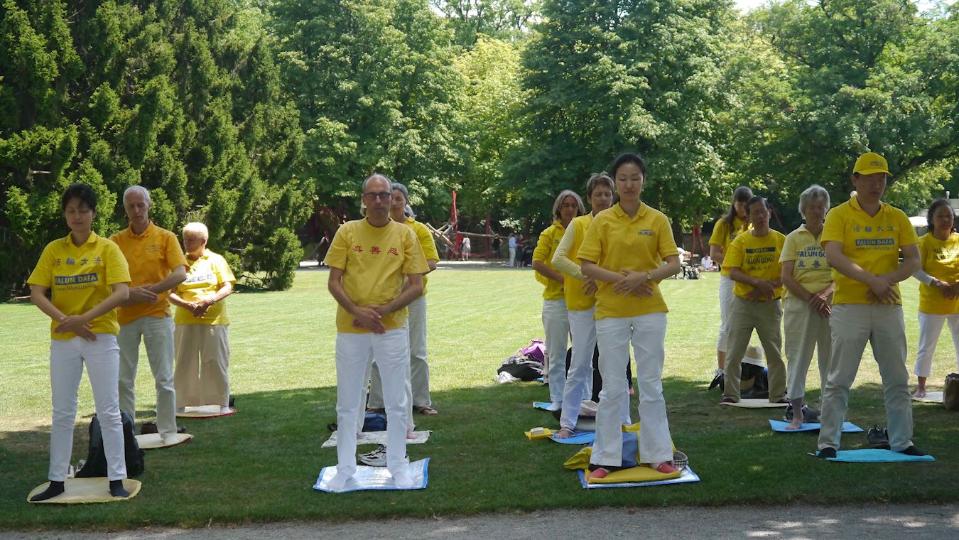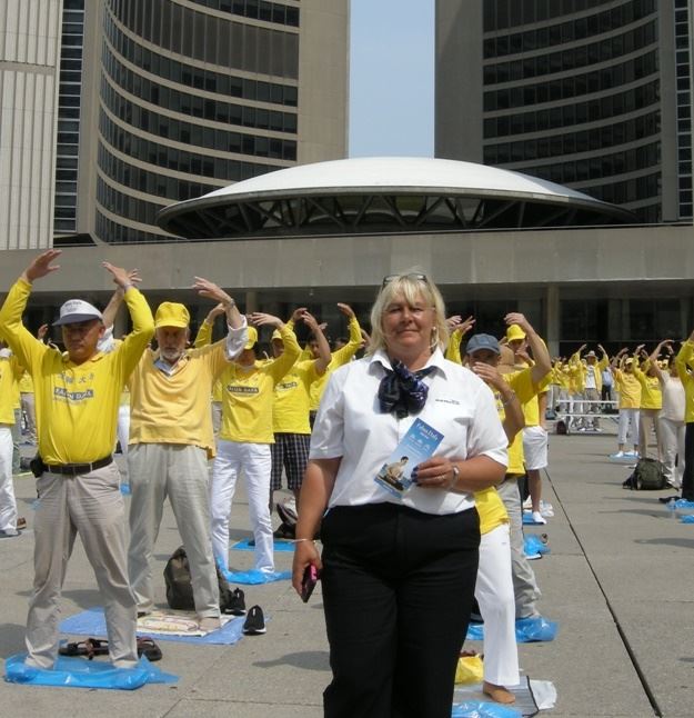 “当有人告诉我今天法轮功会在市政厅前有集体炼功和集会时,我很高兴,就来了,很幸运还得到法轮功学员非常热情和耐心地教功。”