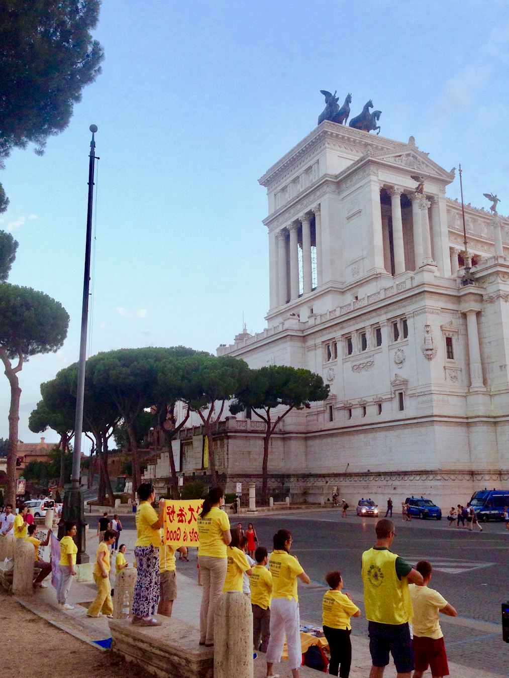 “我们为什么来这里,我们生活在伟大的民主国家。我今天来这里,是为了:在中国的法轮功学员必须知道,他们会知道,他们不孤单,他们没有被忘记。