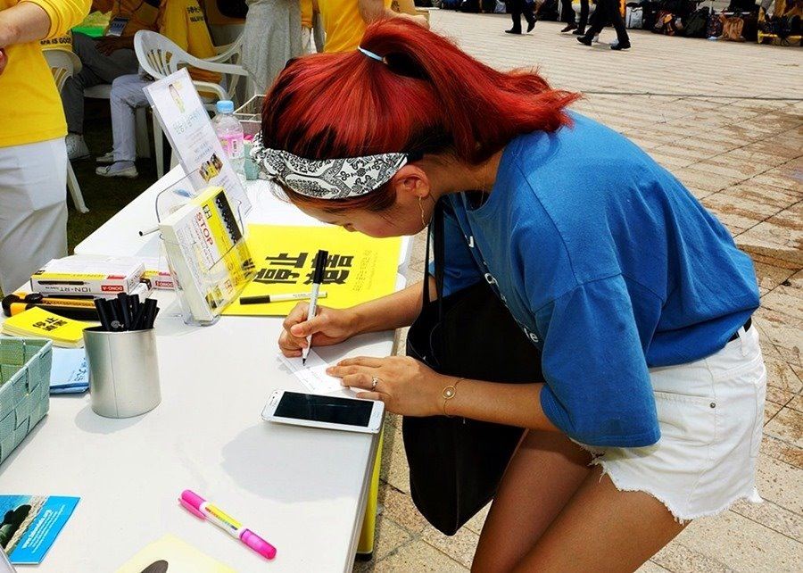 她说:“虽然天气那么炎热,但法轮功的游行队伍却平和、井然有序,令人赞佩。”法轮功的游行在韩国的首都中心举行,而且沿路还有警察开道,在中国法轮功却被镇压,真是冰雪两重天。王女士表示:“我们老百姓一看就知道谁是正的、谁是邪的。”她说,中国人真的应该清醒了,应该站出来说话,制止迫害,不能沉默,为了子孙后代,应该制止对善良人的迫害。