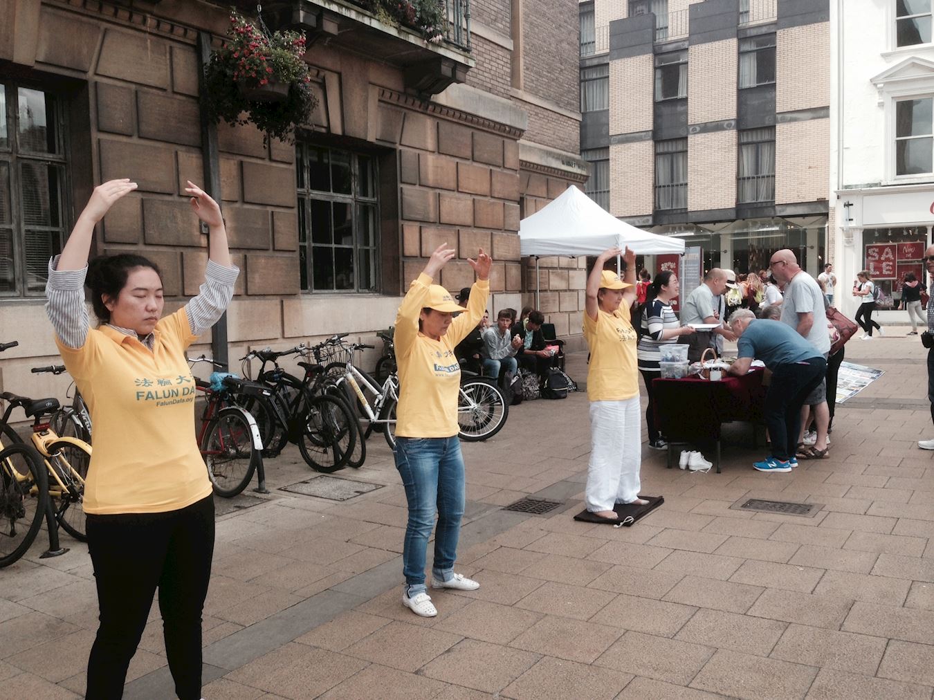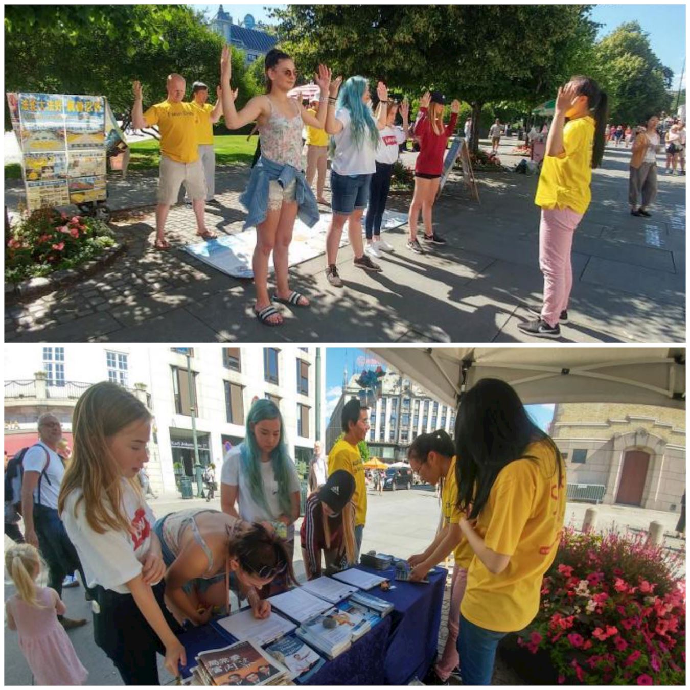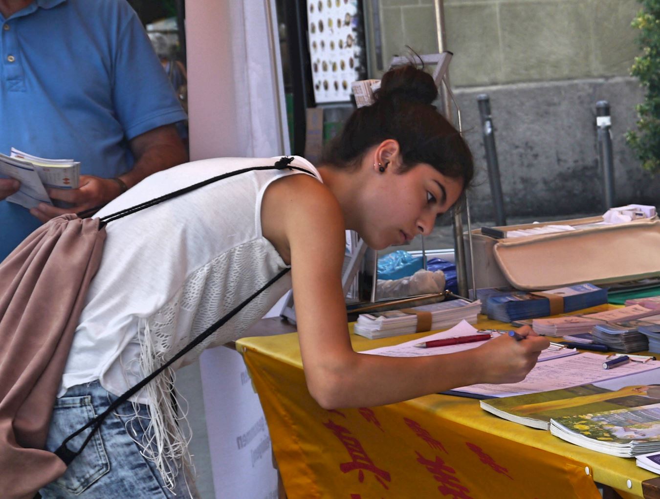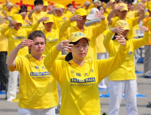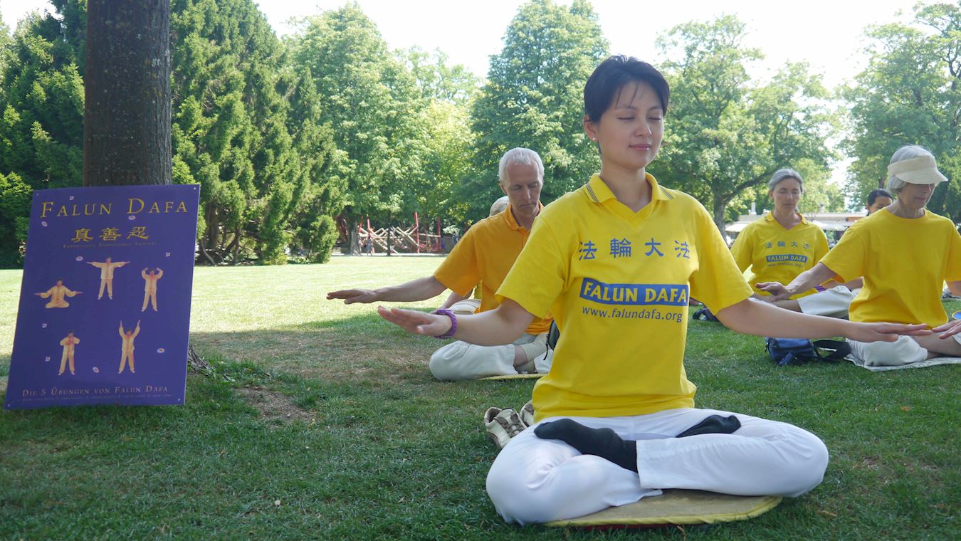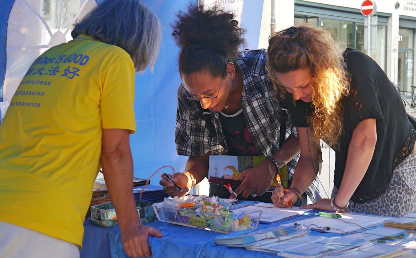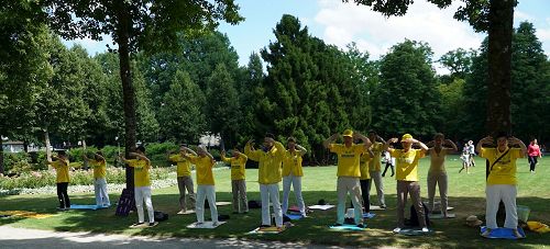 Sylvie说:“我很喜欢法轮大法的‘真善忍’法理,实际上我每天都遵循这个法理在做事。我看到有这么多人在这里炼功,他们的动作一致而又整齐有素,这给我的印象太深刻了。”