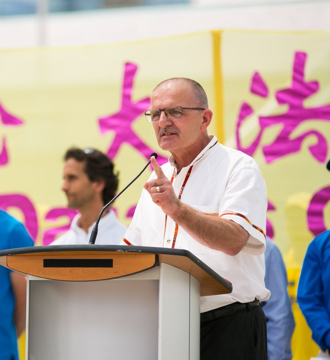 “我在共产的波兰出生和长大,在一九八零年,我参加过团结运动,不只是一个工会组织,而是波兰人争取基本权利的运动。现在,世界上还有人被迫生活在压制人的制度下,比如法轮功学员。”