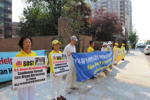 加拿大卡尔加里法轮功学员在中领馆前集会,抗议和谴责中共对法轮功的迫害,悼念被迫害致死的法轮功学员,呼吁全社会正义和善良的力量相联手制止迫害。