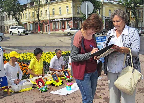 俄罗斯伊尔库茨克市法轮功学员分别在本市沿岸街和中共总领事馆附近举行系列活动,告诉民众法轮功的真相,呼吁制止中共的迫害。