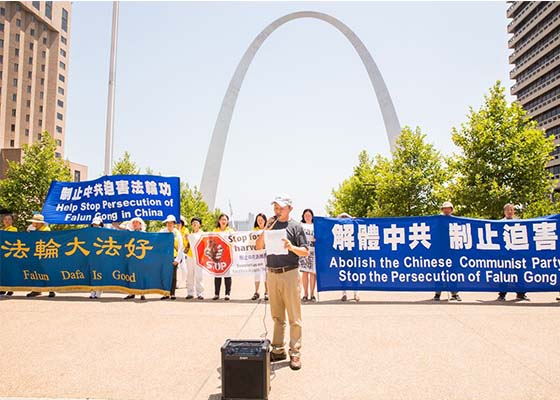 美国圣路易法轮功学员集会 呼吁终结迫害(图)