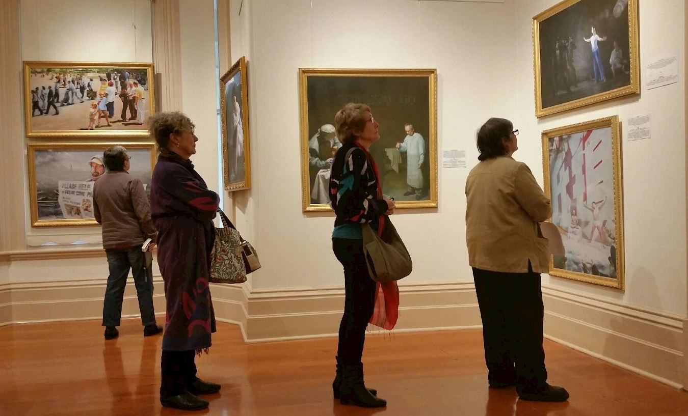 美展展出的作品是由修炼法轮功的中西艺术家们历年来创作的经典作品。自从2004年在美国国会雷本大厦(Rayburn House Office Building)首展以来,“真善忍国际美展”巡回全球四十多个国家和二百多个城市。本次美展主办方负责人张女士说:“这些作品以正统写实的绘画技法,表现修炼人的大善大忍,以及面对迫害,坚忍不屈,用生命实践‘真善忍’的历程。美展作品构图精美、独具巧思,采用高超的传统技法,展示了丰富的精神内涵。”
