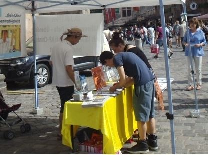 一位中年女士向学员咨询了什么是法轮功及在中国遭受迫害的原因。她说她来自前共产国家捷克,捷克人也曾经在共产党统治下受苦受难,她希望在德国生活的中国法轮功学员,能让更多人知道他们在中国的经历。