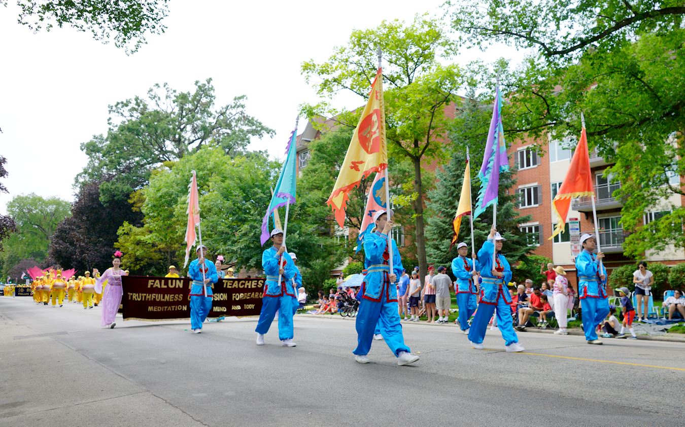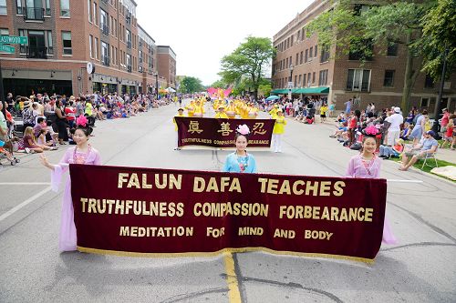 ![]() 图1~7:芝加哥法轮功学员参加2017年7月4日的埃文斯顿美国独立日大游行 |