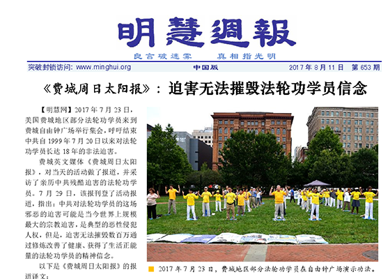《费城周日太阳报》:迫害无法摧毁法轮功学员信念;韩国天梯书店举办第26届法轮功学习班,参加者受益;“铁管家”的故事;2017上半年至少450名法轮功学员被非法判刑