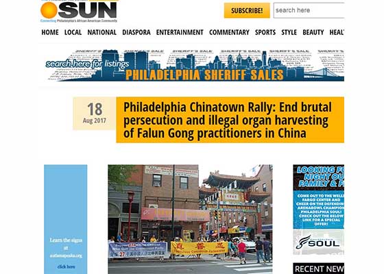 《费城周日太阳报》2017年8月18日刊登了一篇文章,报导了费城法轮功学员8月12日在当地的一次讲真相活动。