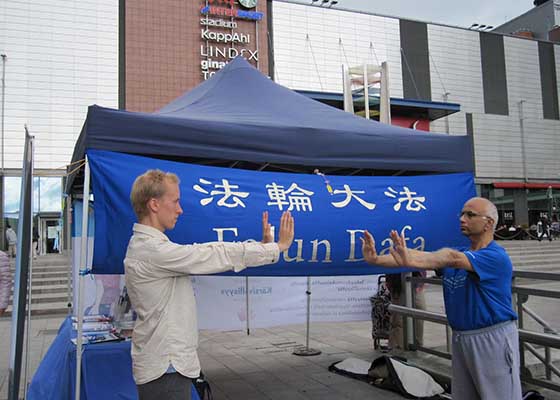 八月二十四日是芬兰的艺术之夜,芬兰的部分法轮功学员也值此机会向民众弘传法轮大法的美好,让陆陆续续到来的市民了解真相后带着喜悦的心情离开。