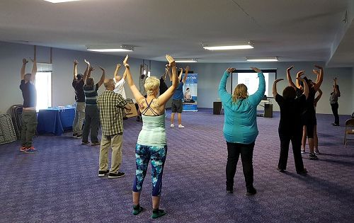 【明慧网二零一七年九月一日】加拿大温尼伯市(Winnipeg)法轮功学员近日收到来自商家Sagehill Stables的邀请,于二零一七年八月二十日在该中心举办了介绍法轮功的学习班(Falun Gong introduction workshop)。有近二十人前来学功,其中包括举办地的老板。她在几周前从法轮功学员讲真相的活动中得知法轮功在中国无辜受迫害的情况,非常同情,并对功法本身产生了浓厚兴趣,所以邀请学员前去教功。