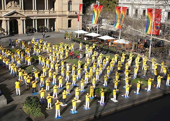 九月八日,法轮功学员在悉尼市区举行了集体大炼功和声势浩大的游行,向社会各界展示法轮大法的祥和美好,展现学员实践“真善忍”信仰而具有的善良和真诚。