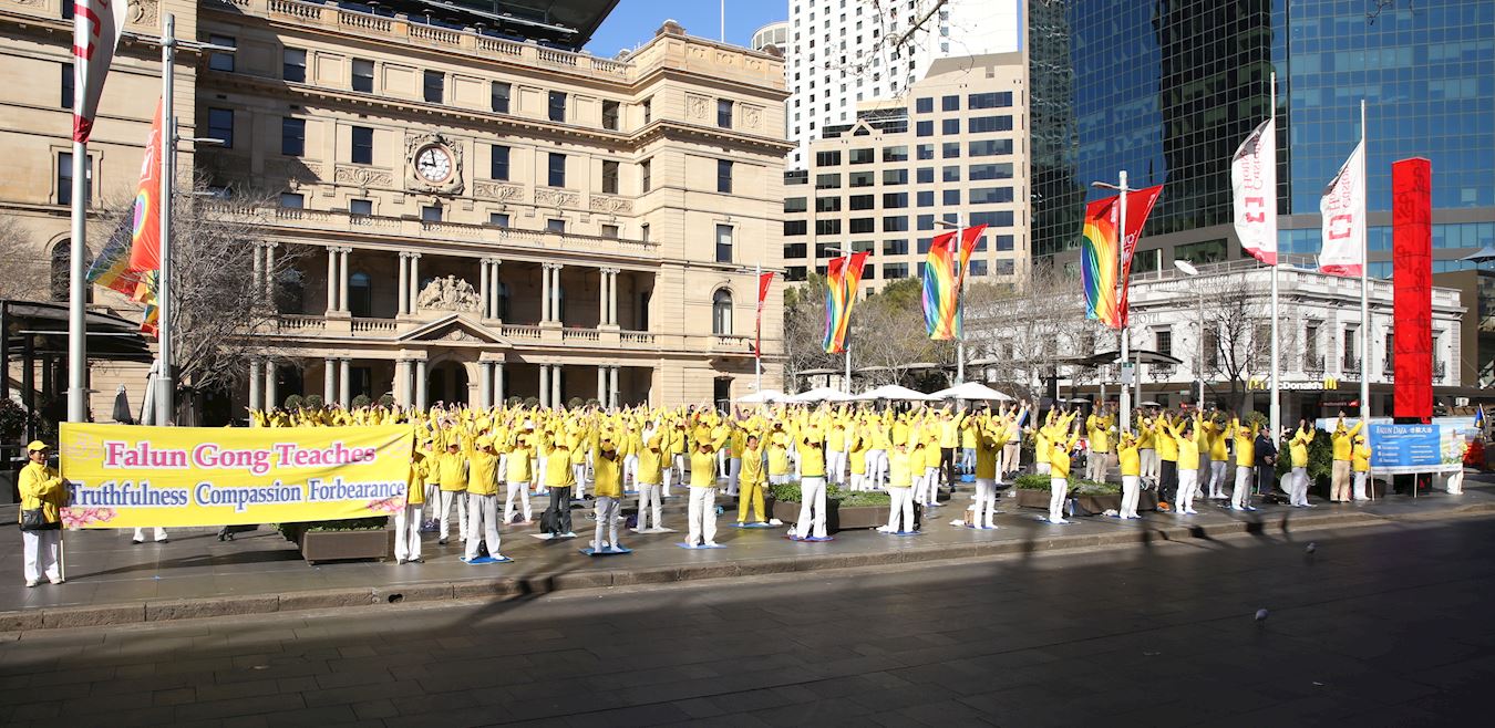 【明慧网二零一七年九月十一日】二零一七年九月八日,来自澳洲各省市的法轮功学员在悉尼市区举行了集体大炼功和声势浩大的游行,向社会各界展示法轮大法(又称法轮功)的祥和美好,展现法轮功学员实践真、善、忍信仰而具有的善良和真诚。