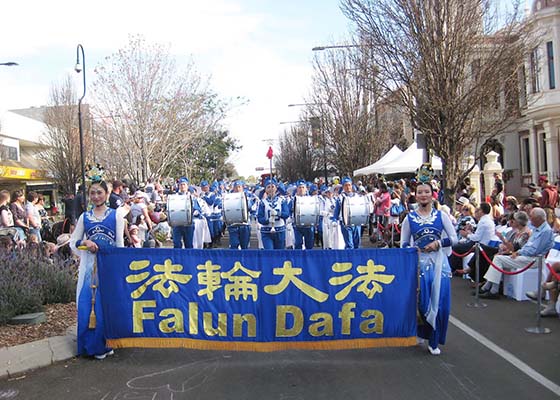 由悉尼和墨尔本法轮功学员组成的天国乐团再次应邀参加了花节大游行。他们阵容整齐,服饰亮丽,赢得观众阵阵掌声和喝彩。