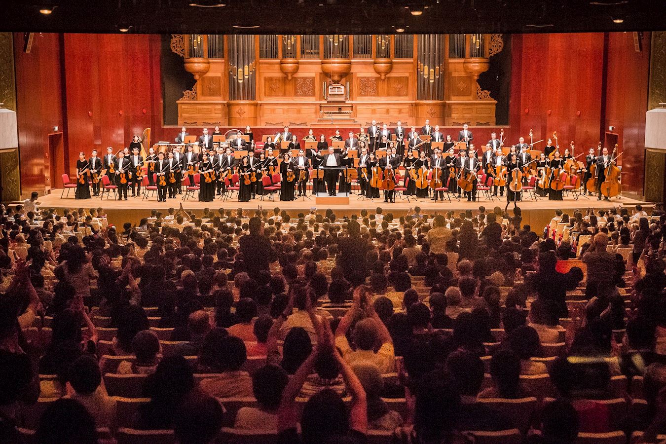 ![]() 图1~2:二零一七年九月二十二日晚,神韵交响乐团于国家音乐厅举行演出。指挥米兰·纳切夫带领所有艺术家们谢幕,爆满的观众掌声不断,观众席上如雷鸣般的鼓掌声,和着经久不息的“Encore”(再来一曲)呼声不断。 |