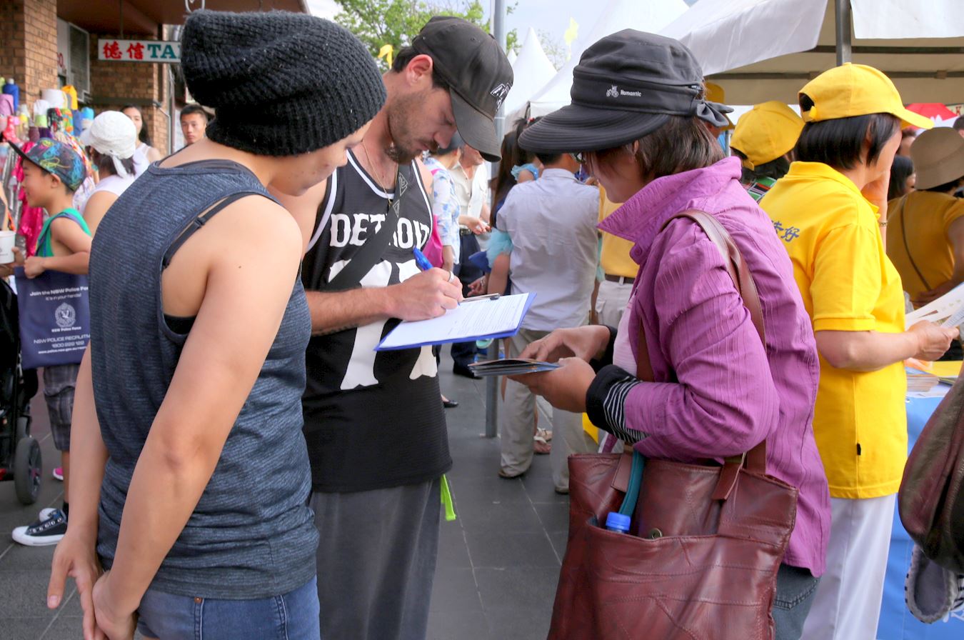 另一位住在悉尼北部的年轻人马特(Matt)在听了法轮功学员介绍法轮功并讲了中共对法轮功的迫害后,他表示,他听说过法轮功,但并不知道中共政府对法轮功迫害如此残酷,特别是活摘法轮功学员的器官。他认为这是不可想象的,是不能接受的,他在征签表上签名支持反迫害。他还表示会更多的了解法轮功,因为这个修炼方法很吸引人,他会去学炼这个功法。