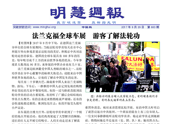 法兰克福全球车展 游客了解法轮功