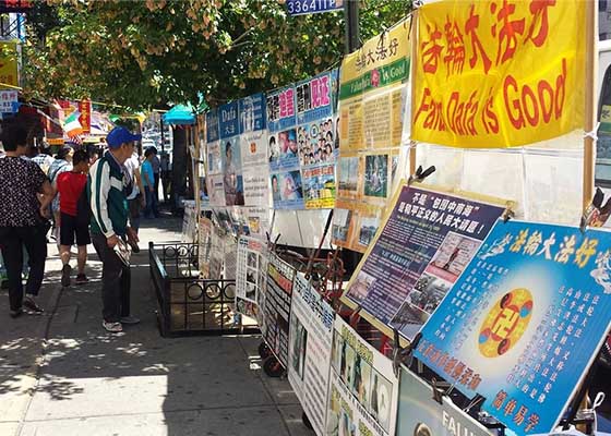 自六月以来,部份纽约和新泽西的法轮功学员利用周日的休息时间来到纽约布鲁克林的华人社区集体炼功和打横幅,明白真相的华人对此表示支持。