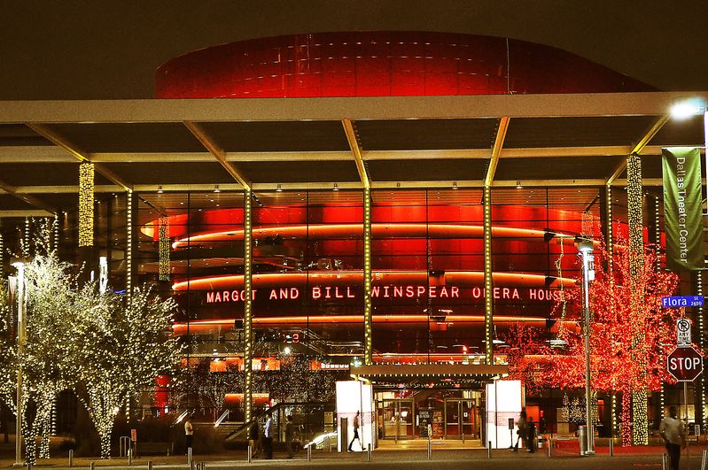 '图5:二零一八年一月十二日至十四日,神韵世界艺术团与神韵北美艺术团同时在达拉斯、相距只有三英里的达拉斯博览会公园音乐厅和达拉斯温斯皮尔歌剧院两个剧院演出七场,演出票全部售罄。图为其中达拉斯AT&T演艺中心 - 温斯皮尔歌剧院外景。据剧院资深管理者说,这个“世界第一秀”风靡达拉斯,受欢迎程度在当地史无前例。'