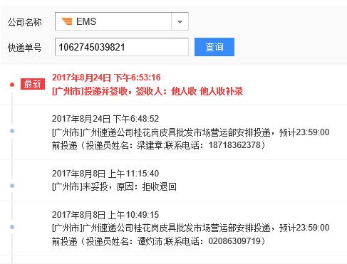 ![]() EMS快递查询情况 |