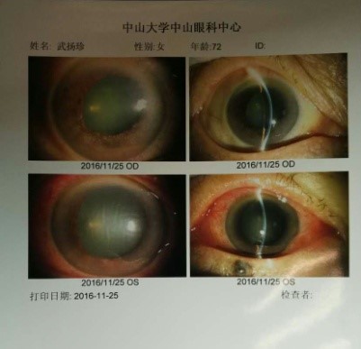 从洗脑班回家当天晚上,二零一六年十一月二十一日晚二十三点,家人带武扬珍到中山大学中山眼科中心就诊;其后,十一月二十二日、二十三日、二十五日,家人又多次带武扬珍去中山眼科中心诊治,医院建议:马上住院治疗。