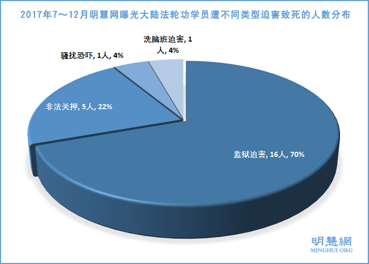![]() 图1:2017年7~12月明慧网报道中国大陆23名法轮功学员被迫害致死 |