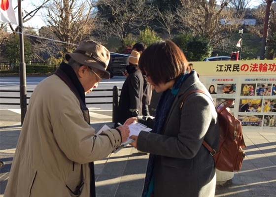 法轮功学员向日本民众讲述发生在中国的,对法轮功学员的大规模残酷迫害及活摘器官的真相,并征集联署举报江泽民的签名,得到日本民众的积极响应。