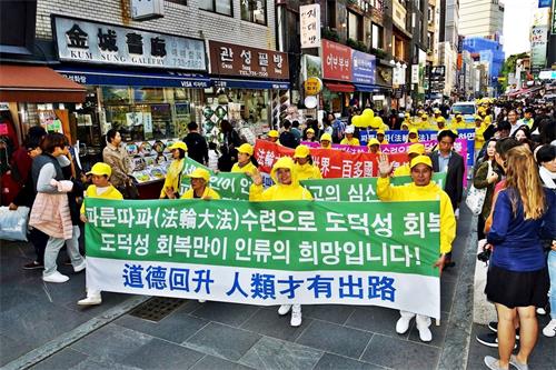 ![]() 图3~6:二零一八年十月十三日,来自亚洲十多个国家的法轮功学员们在韩国首尔市中心举行盛大游行 |