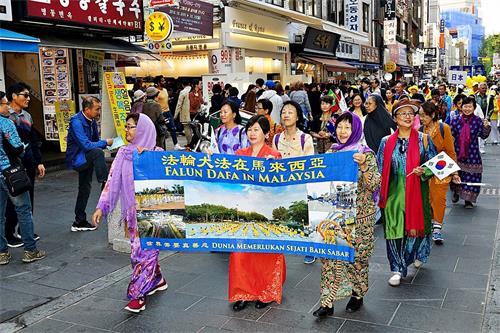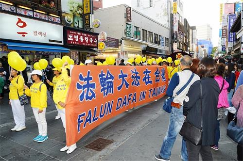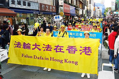 游行队伍不但震撼了大陆游客,也引起韩国市民的关注。