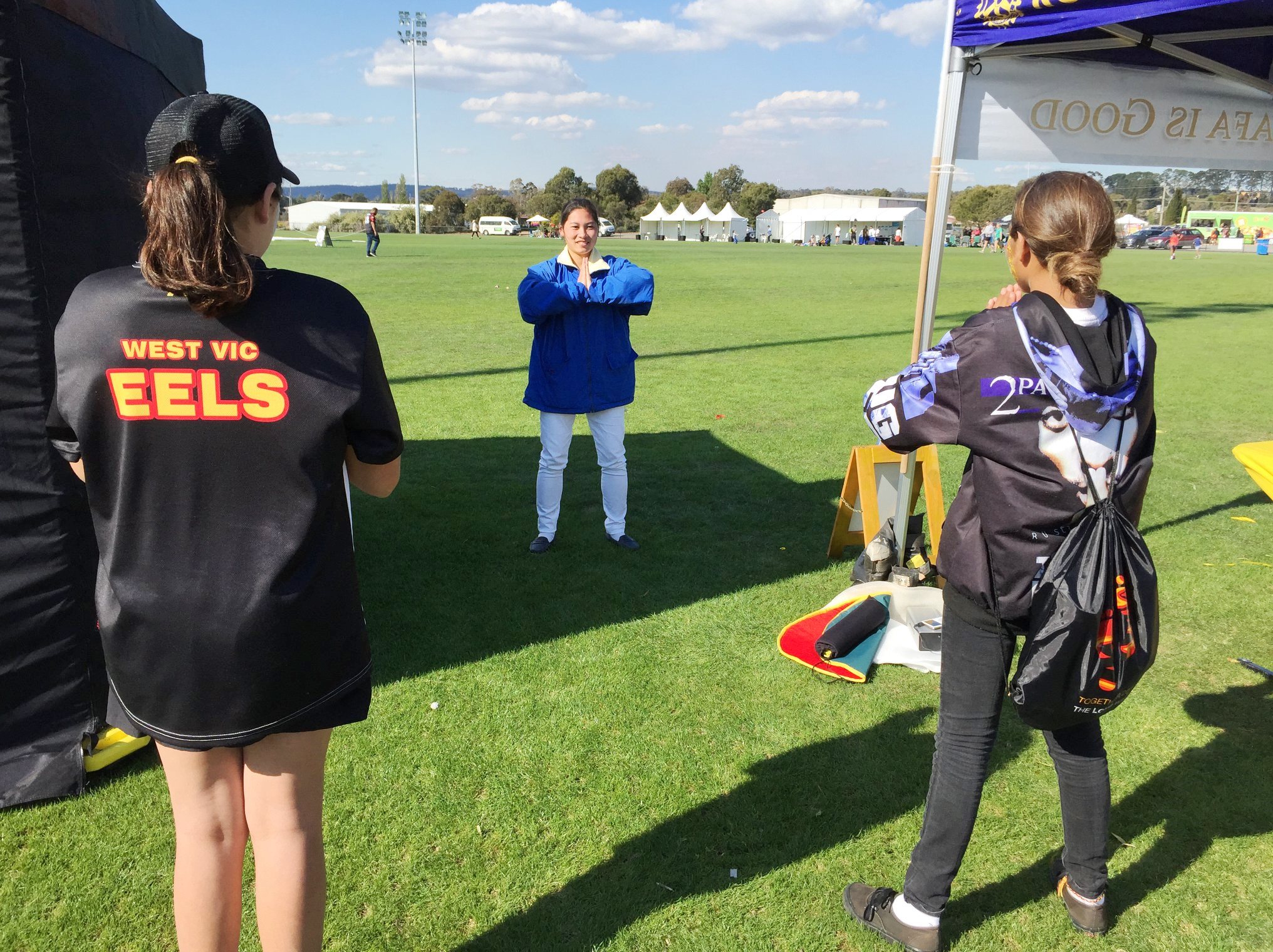 来自西澳的小朋友丹尼(Dianne)和塔利娅(Tahlia)随父母一起来参加节庆,并观看叔父的足球比赛,他们对小莲花爱不释手。很多孩子都非常喜欢莲花,还想到为自己的兄弟姐妹或者朋友制作或者拿取莲花。