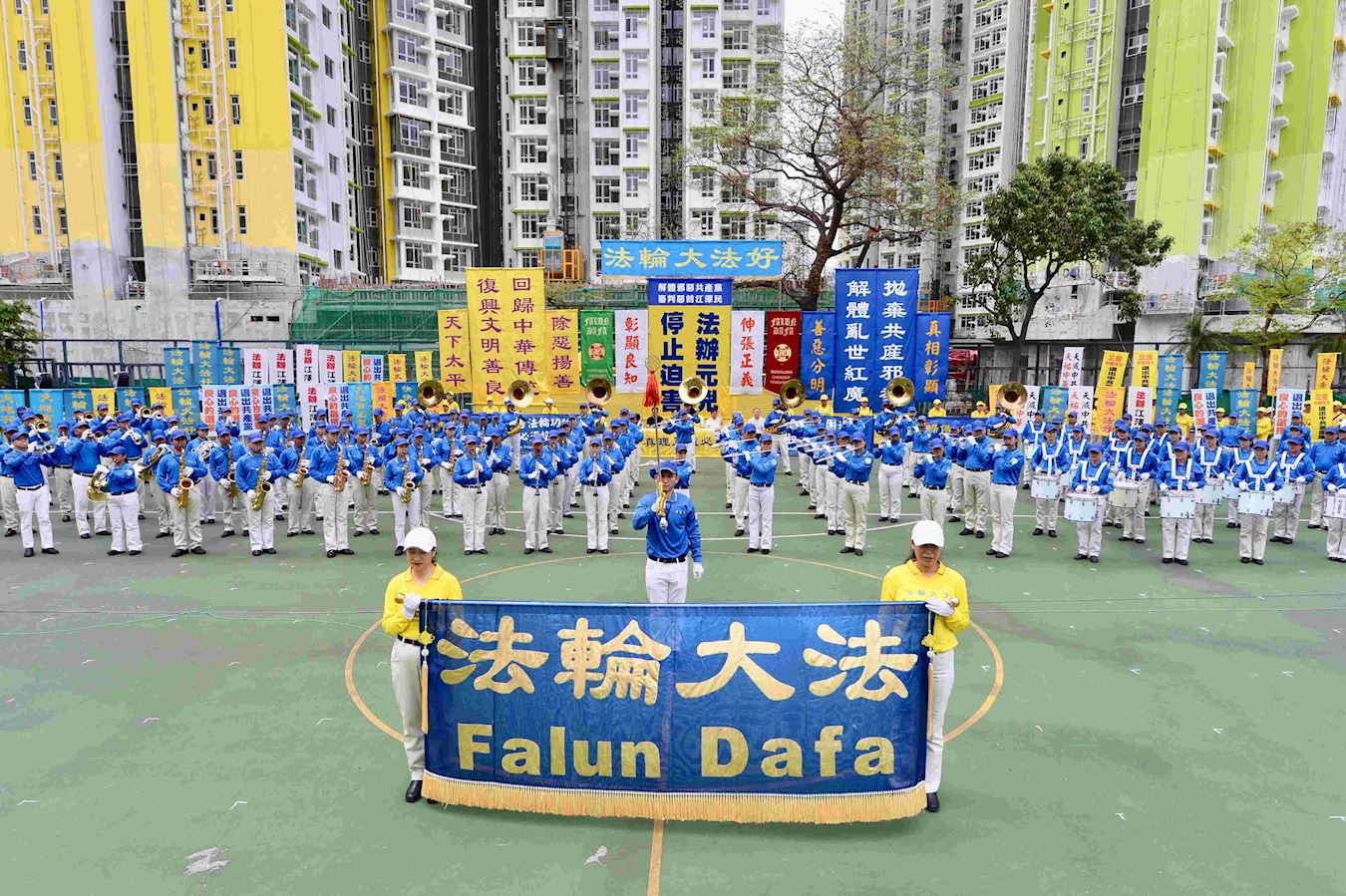 当天早上,法轮功学员在九龙长沙湾游乐场集体炼功,随即在原地举行集会。多位政要名人在会上发言声援法轮功,谴责中共暴政,呼吁各界共同努力,捍卫中国的人权自由,让没有共产党的美好新中国早日到来。