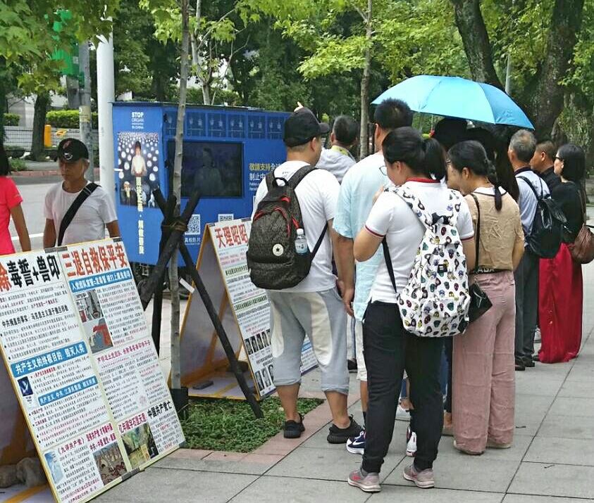 【明慧网二零一八年十月三日】九月底的周末,台湾台北虽然是秋老虎的酷热高温,但延续自中秋节以来、又接续十月初假期,自大陆造访旅游的人群明显增加了许多,在国父纪念馆前讲真相的学员一如以往、乐呵呵地问候并迎接中国游客的到访。