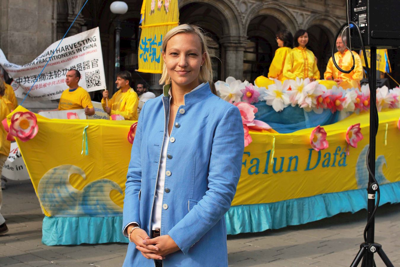 卡罗琳娜·亨格兰德女士Caroline Hungerlaender女士是维也纳州议会议员,奥地利人民党党员。为了客观了解法轮功,她曾经阅读了许多材料。十月一日当天她到活动现场致辞,公开支持法轮功学员,祝愿法轮功学员获得成功。