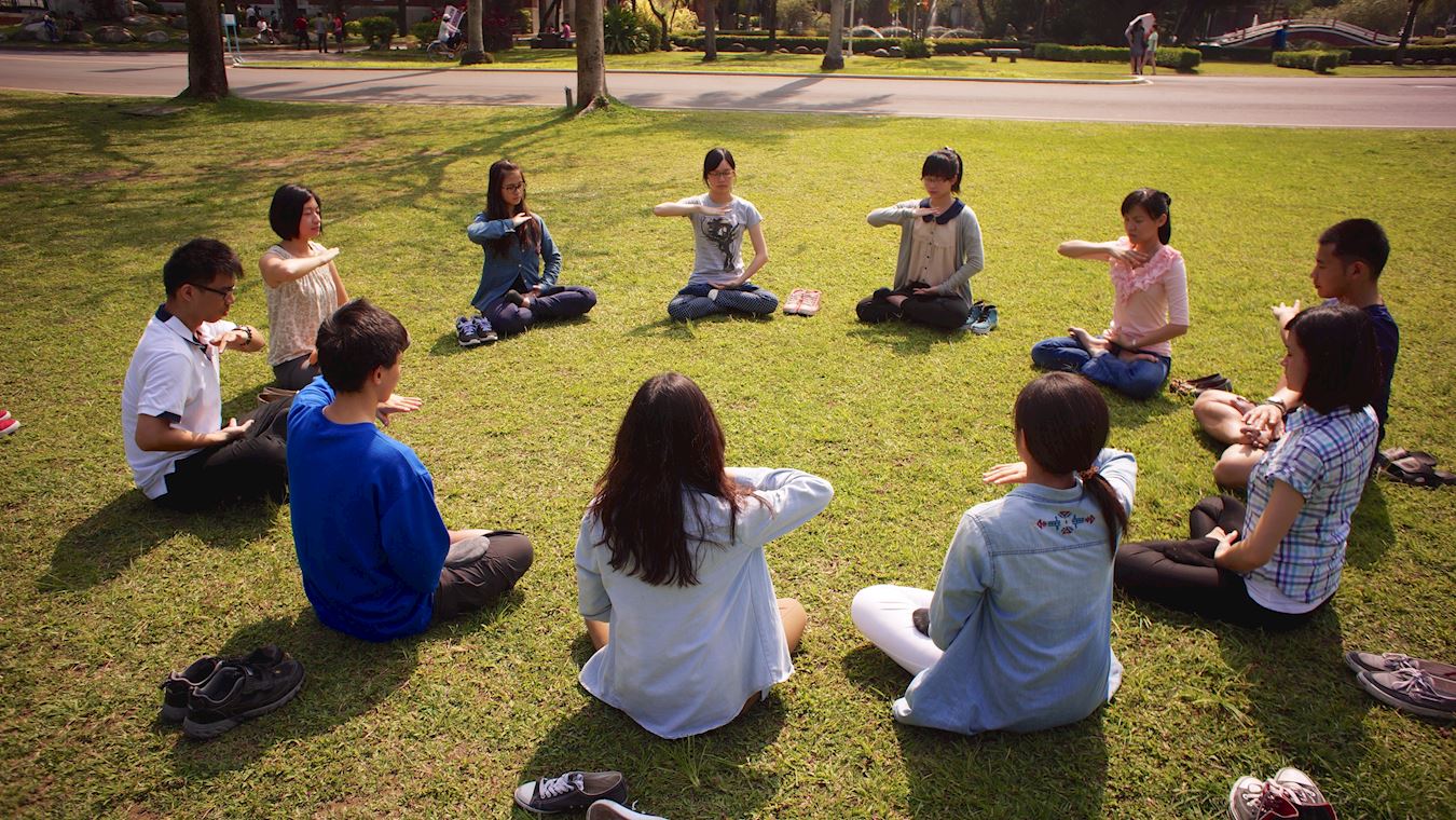 月落日升,黎明初晓,悠扬的炼功音乐在中兴大学悠悠响起,当天际浑云渐渐散去,法轮功舒缓祥和的五套功法成为校园里最美丽祥和的风景。