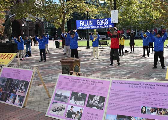 十月二十一日,法轮功学员在美国波士顿市的科普利广场(Copley Square)举办活动,向民众传播真相。