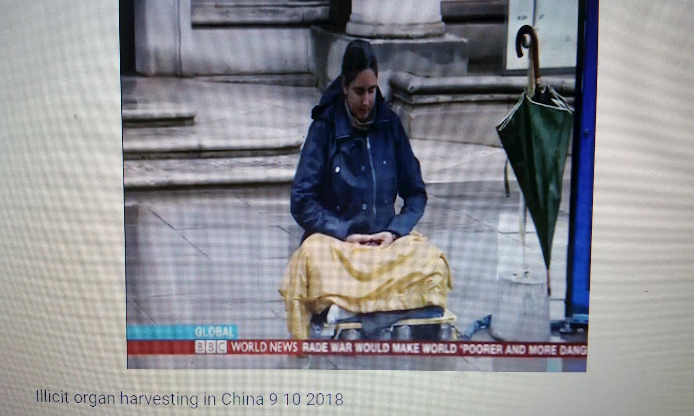 ![]() 图2:二零一八年十月八日,BBC电视台“影响(Impact)”栏目播放马修·希尔(Matthew Hill)的专门调查“中国器官移植调查( China’s Organ Transplants),节目播放过程中主持人(Philippa Thomas)在与希尔连线互动 |