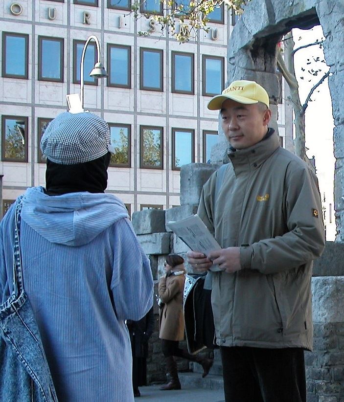 一位年轻的中国男子对真相点很感兴趣,拍了很多照片。他告诉学员,他是一个来自其它城市的留学生,曾在法轮功的真相点上了解到中共迫害的真相,也读了《九评共产党》。当学员问他有没有加入过中共党、团、队时,这位男子有些无奈地说:“我们不都是被拉进去的么?!”后来他毫不犹豫地声明退出中共及其相关组织。
